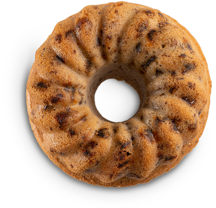 Rýžová mouka, bramborový škrob, tapioková mouka, cukr, vejce, slunečnicový olej, pitná voda, kukuřičný škrob, pohanková mouka, jádra vlašských ořechů, sušené fíky, bourbon vanilka, kypřící látky (dihydrogenfosforečnan vápenatý, hydrogenuhličitan sodný), xanthanová guma.