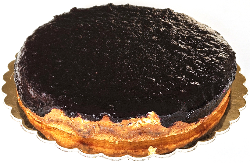 Korpus: Škrob (bramborový, kukuřičný, tapiokový), cukr, rýžová mouka, mandle, pohanková mouka, vejce, kukuřičná mouka, máslo, sůl, stabilizátor (E415), přírodní aroma, kypřící látky (E450, E500), náplň: tvaroh, smetana, cukr, vejce, kukuřičný škrob, Poleva: borůvky, cukr, citronová šťáva, agar