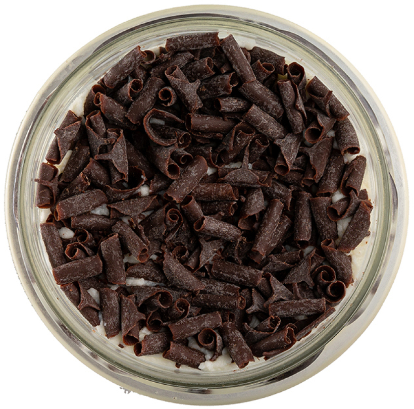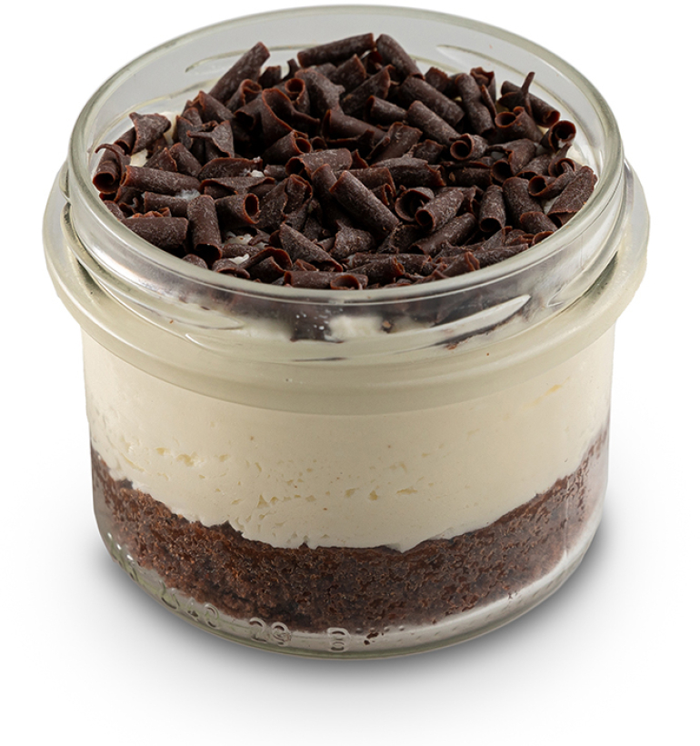 Korpus: vejce, cukr, škrob (bramborový, kukuřičný, tapiokový), rýžová mouka, pohanková mouka, kukuřičná mouka, kakaový prášek, kypřící látky (dihydrogenfosforečnan vápenatý, hydrogenuhličitan sodný), sůl, stabilizátor (E415), aroma. Náplň: tvaroh, cukr, máslo, Poleva: čokoláda 73% (kakaová hmota, cukr, kakaové máslo, emulgátor: sójový lecitin, přírodní vanilkový extrakt), máslo