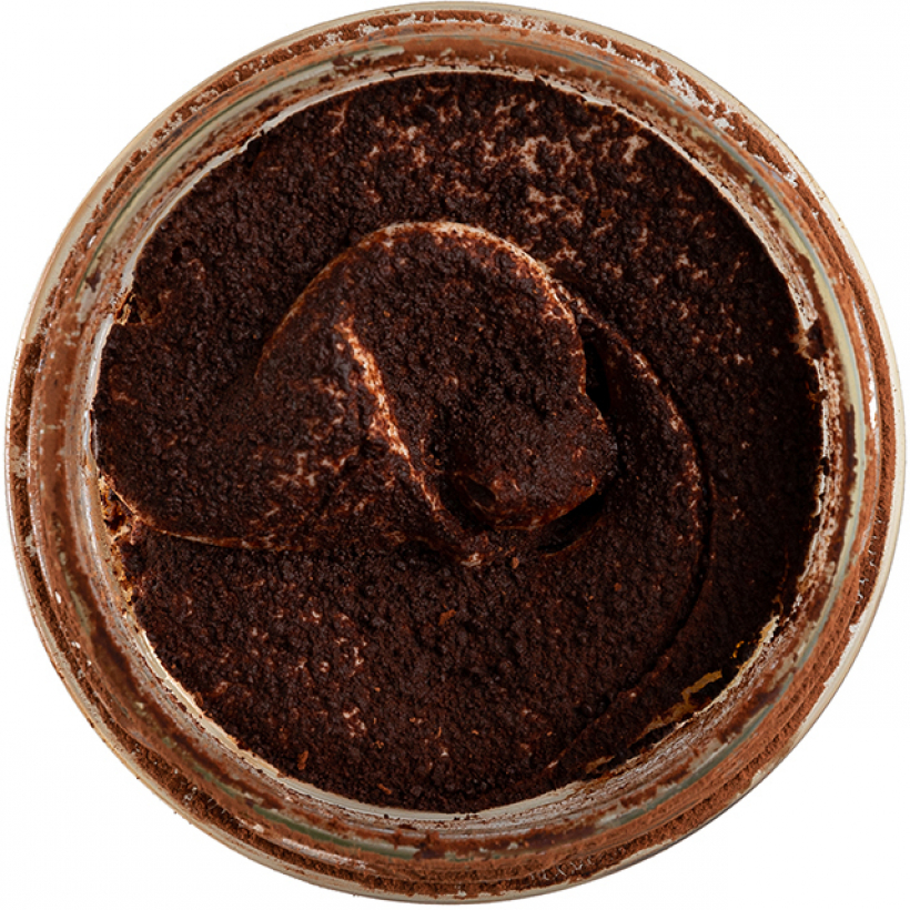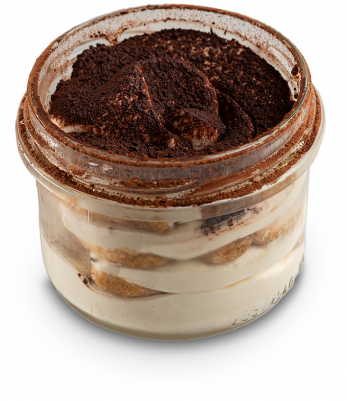 Piškoty (vejce, cukr, škrob (bramborový, kukuřičný, tapiokový), rýžová mouka, pohanková mouka, kukuřičná mouka, kypřící látky (E450, E500), sůl, stabilizátor E415), mandlové aroma, káva, citronová kůra. Krém (mascarpone (smetana, kyselina citronová) pasterované žloutky, smetana 33 %, cukr), kakaový prášek.