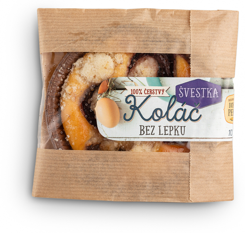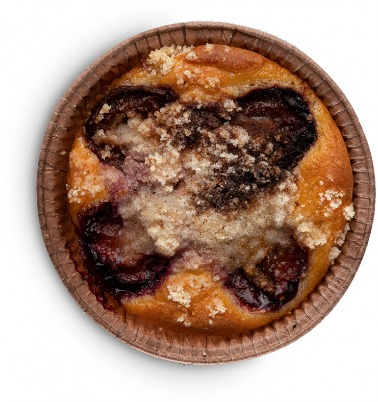 Zakysaná smetana, rýžová mouka, bramborový škrob, tapioková mouka, cukr, slunečnicový olej, vejce, máslo, kukuřičný škrob, pohanková mouka, kypřící látky (dihydrogenfosforečnan vápenatý, hydrogenuhličitan sodný), xanthanová guma, švestky.