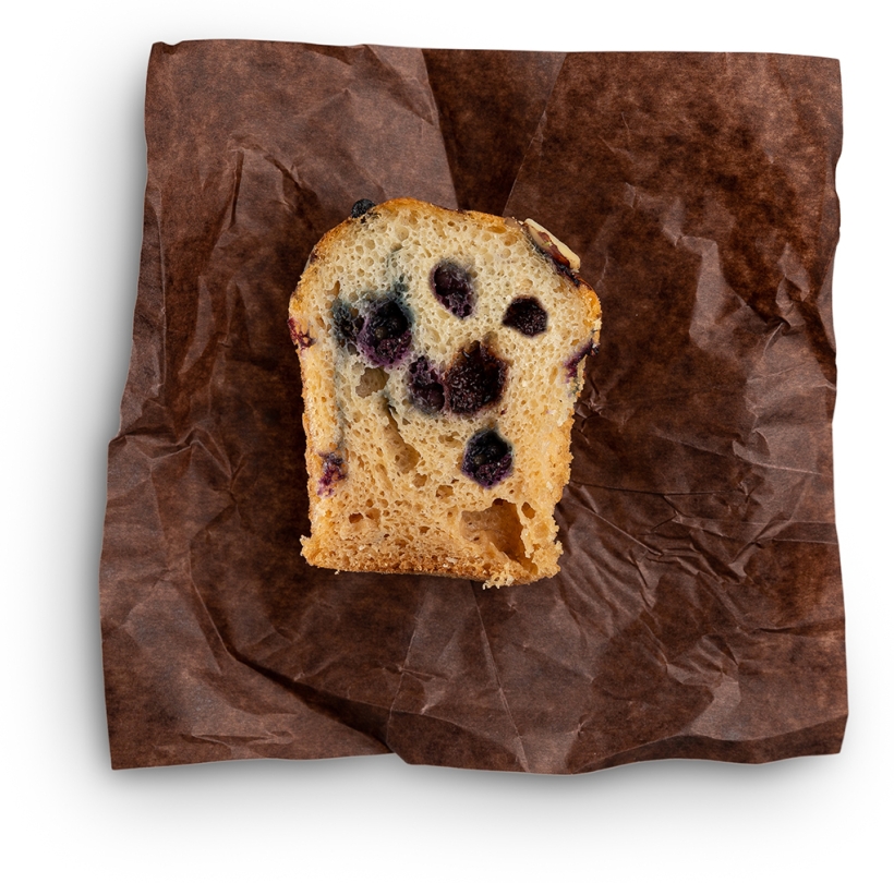 Zakysaná smetana, rýžová mouka, bramborový škrob, tapioková mouka, kukuřičná mouka, pohanková mouka, máslo, cukr, borůvky, vejce, kypřící prášek (kypřící látky dihydrogefosforečnan sodný, hydrogenuhličitan sodný, kukuřičný škrob), zahušťovadla (hydroxypropylmethylcelulóza, guarová mouka), sůl